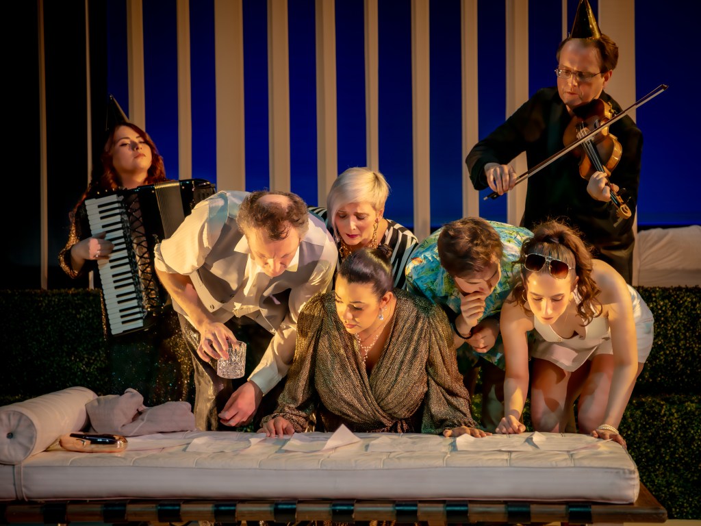 Schicchi Dan d’Souza | Zara Felicity Buckland | Claudia Emma Morwood | Simon John Molloy | Roddy Aaron O’Hare | Lauretta Ceferina Penny | Lawyer & Accordion Valerie Barr | Doctor & Double Bass Jess Martin | Witness & Violin Simon Hewitt Jones | Witness & Clarinet Stephanie Yim